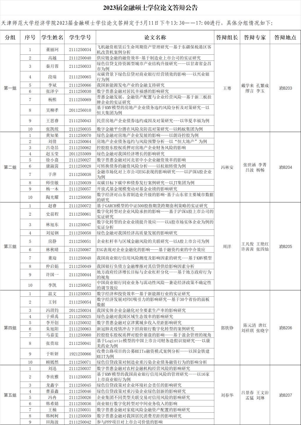 雷竞技raybet2023届金融硕士学位论文答辩公告